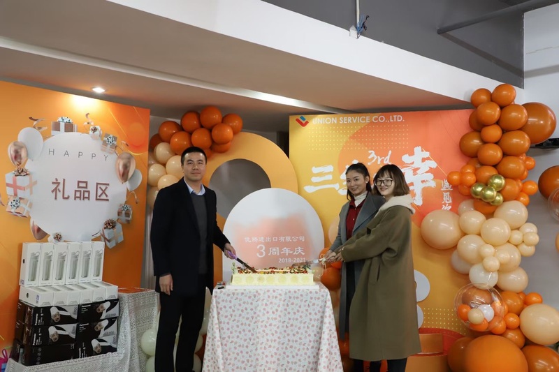 火辣的舞蹈、動人的歌喉、真情的流露,讓這場慶典變得精彩和感動。5位美麗的小姐姐帶來的開場舞,瞬間點燃全場。隨后,優(yōu)騰公司總經(jīng)理徐生科、外銷一部總監(jiān)饒思斯、外銷二部總監(jiān)陳靜一起上臺分切3周年慶典蛋糕。徐總在致辭中帶領(lǐng)大家回顧了前兩次的周年慶典,感慨時光荏苒,優(yōu)騰在一年年地成長壯大,并表示期待大家?guī)砀实娜苣陸c典。