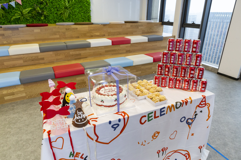 來到27樓知行合一教室,一走進便看到“Happy Birthday”的掛旗以及擺放在桌子上精美的草莓蛋糕和泡芙。16位伙伴坐在一起,聽著生日祝福歌,氣氛十分融洽。拍照道具也十分的搞怪和用心,有各式各樣的眼鏡和帽子,集體照拍出來效果也很可愛。期間進行了切蛋糕和游戲環(huán)節(jié),筆者被抽中為大家唱了首歌,得到大家對我的鼓勵。生日代表著自己長大一歲,能與這么多小伙伴一起見證成長是件幸運的事情,離場之前收獲到公司準備的印刷著各自名字的定制版可樂,讓人心生暖意,感受到策劃組的同事的用心。