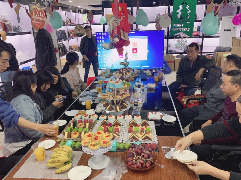 12月25日下午,廣州辦全體同事精神抖擻地進入活動現場,個個喜笑顏開,像個孩子似的享受各種美食和水果及炸雞。大家相互干杯和挑選美食,盡情地享受節日的開心時光,對公司今后發展也更加有信心。活動最后,大家通過合影形式記錄下即將過去的2021年,為公司送上最誠摯的祝福。