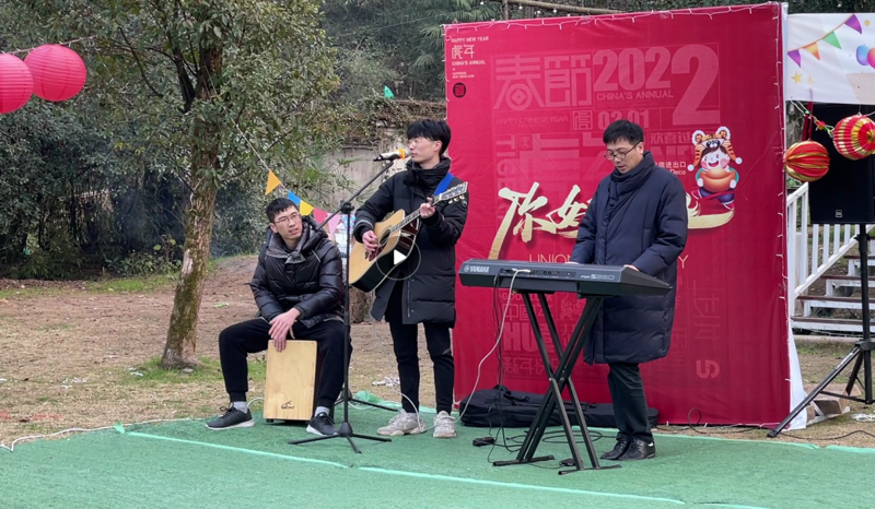 在風景秀麗的清風山房,我們準備了豐盛的美食,有暖身的羊雜湯、香氣誘人的烤全羊、冬日必備的小火鍋,還有各色各樣的零食與糕點。伴隨著樂隊青春活力的歌聲,圍坐在各自的帳篷中享受美食,也享受著難得的悠閑時光。精心準備的各具特色的表演讓大伙兒減少了生疏,拉近了彼此距離。閑暇之余,大家還參與了寫對聯、剪剪紙、做燈籠等小活動,成品也被用來裝飾大家的帳篷。在年夜飯的間隙更有豐富的年終大獎等著大家,每個人都懷抱這希望迎接最后的驚喜。