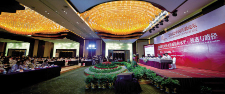 開幕式后,國務(wù)院發(fā)展研究中心宏觀部部長余斌、金融研究所所長張承惠,中國社科院經(jīng)濟(jì)研究所所長裴長洪,對外經(jīng)濟(jì)貿(mào)易大學(xué)國際經(jīng)濟(jì)研究院院長桑百川等專家學(xué)者圍繞論壇主題,分別就當(dāng)前經(jīng)濟(jì)形勢與政策選擇,歐債危機(jī)的起因、影響與趨勢,轉(zhuǎn)變外貿(mào)發(fā)展方式和企業(yè)轉(zhuǎn)型升級,世界經(jīng)濟(jì)形勢與中國對策等話題作主題演講。在為期一天的時間里,與會代表還就“走出去”與“引進(jìn)來”融合發(fā)展等議題展開專題演講和研討。