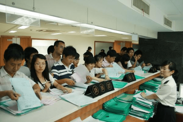 以前通關(guān)窗口排隊(duì)等待的人流