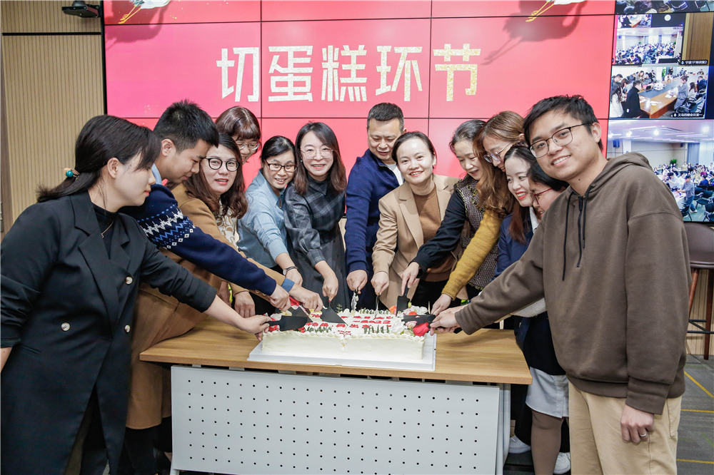 慶典起始,全體人員觀看來自各方的祝福視頻。接著,陳總詳細解讀了本次周年慶主題的深刻含義。在新冠疫情和俄烏戰(zhàn)爭的雙重沖擊下,國際局勢動蕩不安,外貿(mào)行業(yè)舉步維艱。但陳總表示,只要我們保持初心,重拾信心,前方一定是無限曙光。同時,陳總提出了走出當前困境的五大策略:一是重“質(zhì)”非“量”的提高,讓工作流程規(guī)范化、信息化,以提高操作效率和員工綜合實力;二是在堅持“跟著國家方向走”的總方針下,開拓更多優(yōu)勝特色市場;三是重視供應鏈的建設和管理;四是鼓勵多業(yè)態(tài)模式和多元創(chuàng)新;五是建立經(jīng)濟內(nèi)循環(huán)。發(fā)言完畢,陳總和優(yōu)勝其他股東共同切下了帶著滿滿祝福和愿望的生日蛋糕。