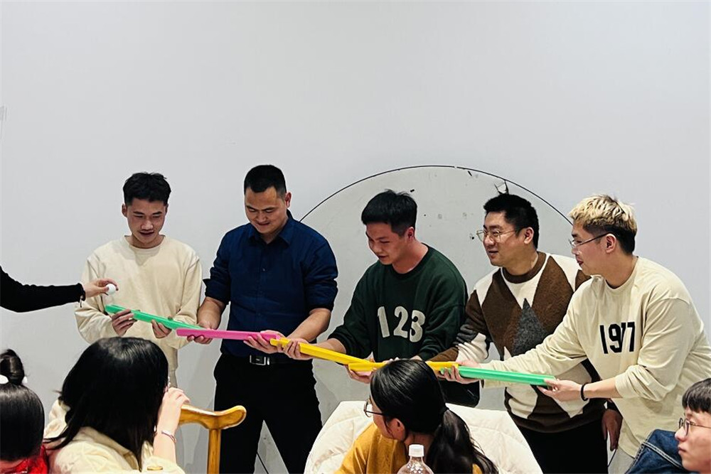 在調節氣氛的游戲環節“珠行萬里”中,大家爭先恐后地傳遞著小球,三組小伙伴齊心協力,獲得了最后的勝利。