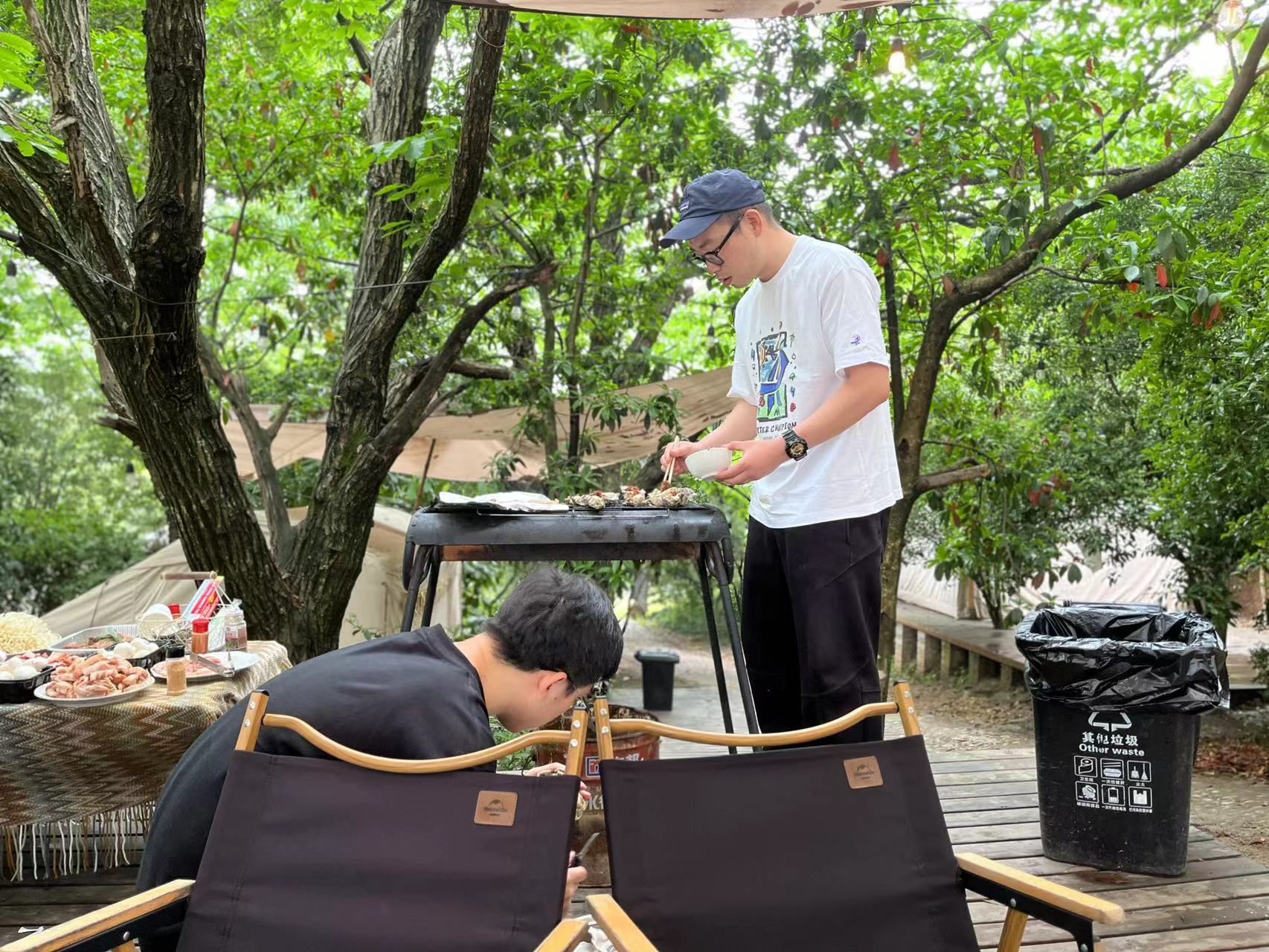 山路蜿蜒,小伙伴們陸續(xù)抵達(dá)目的地,清洗處理好提前從超市購買好的食物,待柴火和木炭準(zhǔn)備好后,“大廚們”躍躍欲試,秀出了自己的烤肉絕技以及小龍蝦烹飪手法。在大家的協(xié)作下,每一道菜都是令人贊嘆的美味。在品嘗美食之余,我們也一起度過了愉快的時(shí)光。