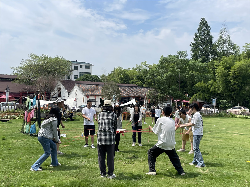 一大早,人員到齊,教練就帶著大家一起做熱身運動。隨后,“勇武隊”和“一飛沖天隊”組隊完畢。兩隊分別展示了自己的口號、隊歌和pose,氣氛達到頂峰。Battle必不可少。兩隊就“高山流水”(傳送乒乓球)、“打鼓”(拉鼓打球)以及“大力士”(背人)活動展開了激烈的比拼。通過游戲,大家意識到我們是一個團體,每個人都有不同的思考方式,結合集體智慧才能把事情做到更好。緊張的比拼結束后,大家各自落座,開始自助烤肉,不會烤的同事四處“蹭吃蹭喝”,吃得不亦樂乎。酒足飯飽之后稍作休息,大家開始了游園活動,有玩全地形車的,有玩叢林穿越的,有玩拉胚燒制的,也有圍爐煮茶做永生花團扇的,大家歡聲笑語,不亦樂乎。