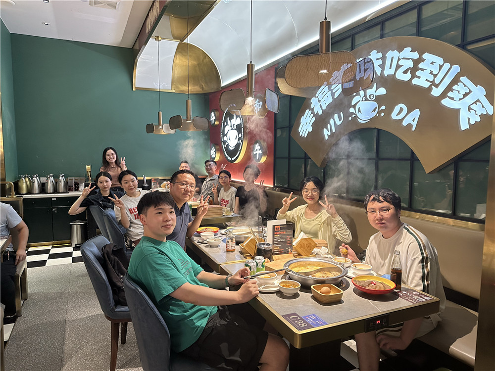 初來乍到,恰逢部門團建。8月2日的晚風是32度,我們一行十一人歡聚在東部銀泰牛噠壽喜燒店。