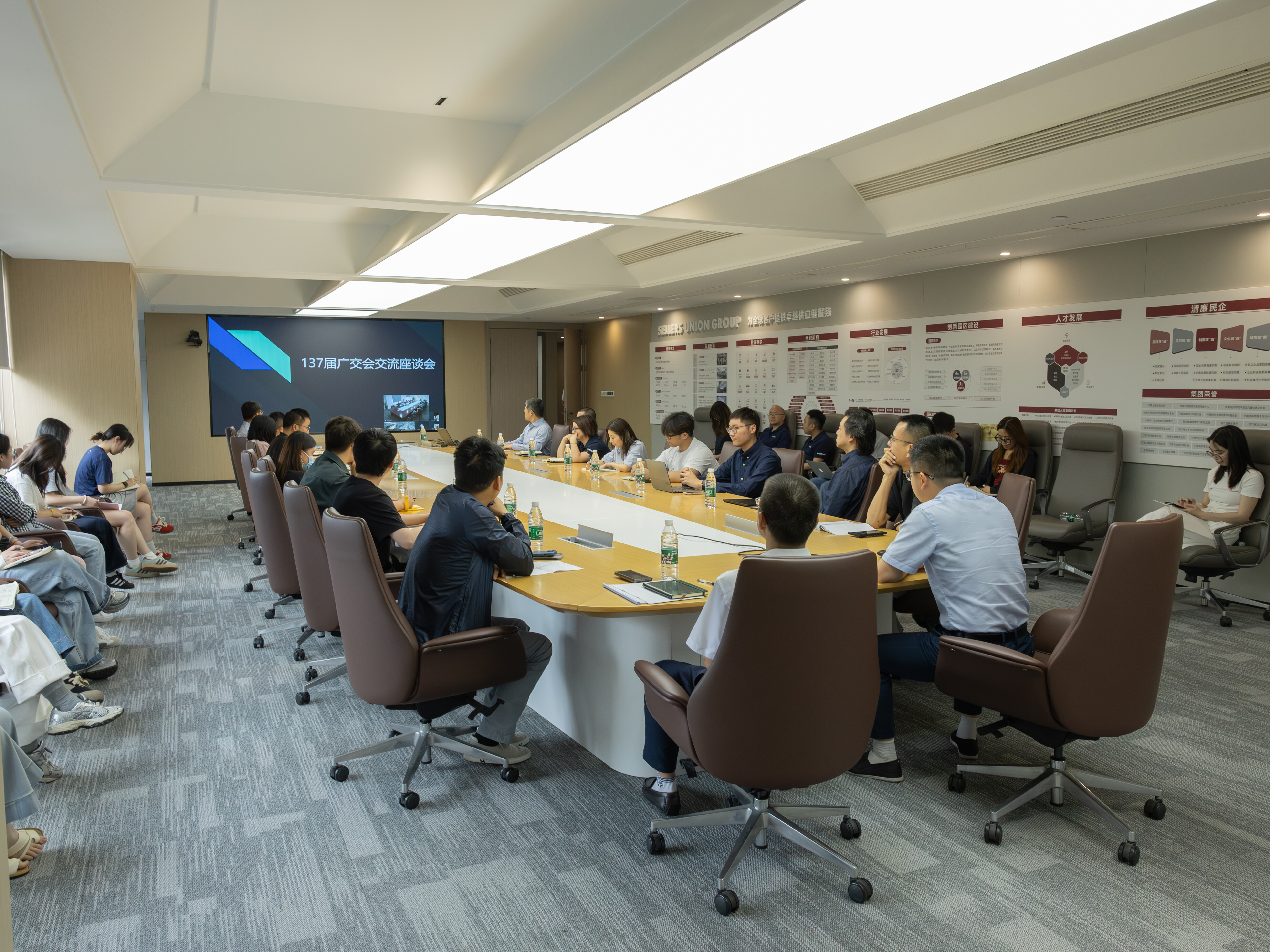 5月15日下午,集團在利他之心會議室組織召開第137屆廣交會參展分享交流會。會議由市場研究部總經理孟祥龍主持,各參展公司代表深入交流參展心得。