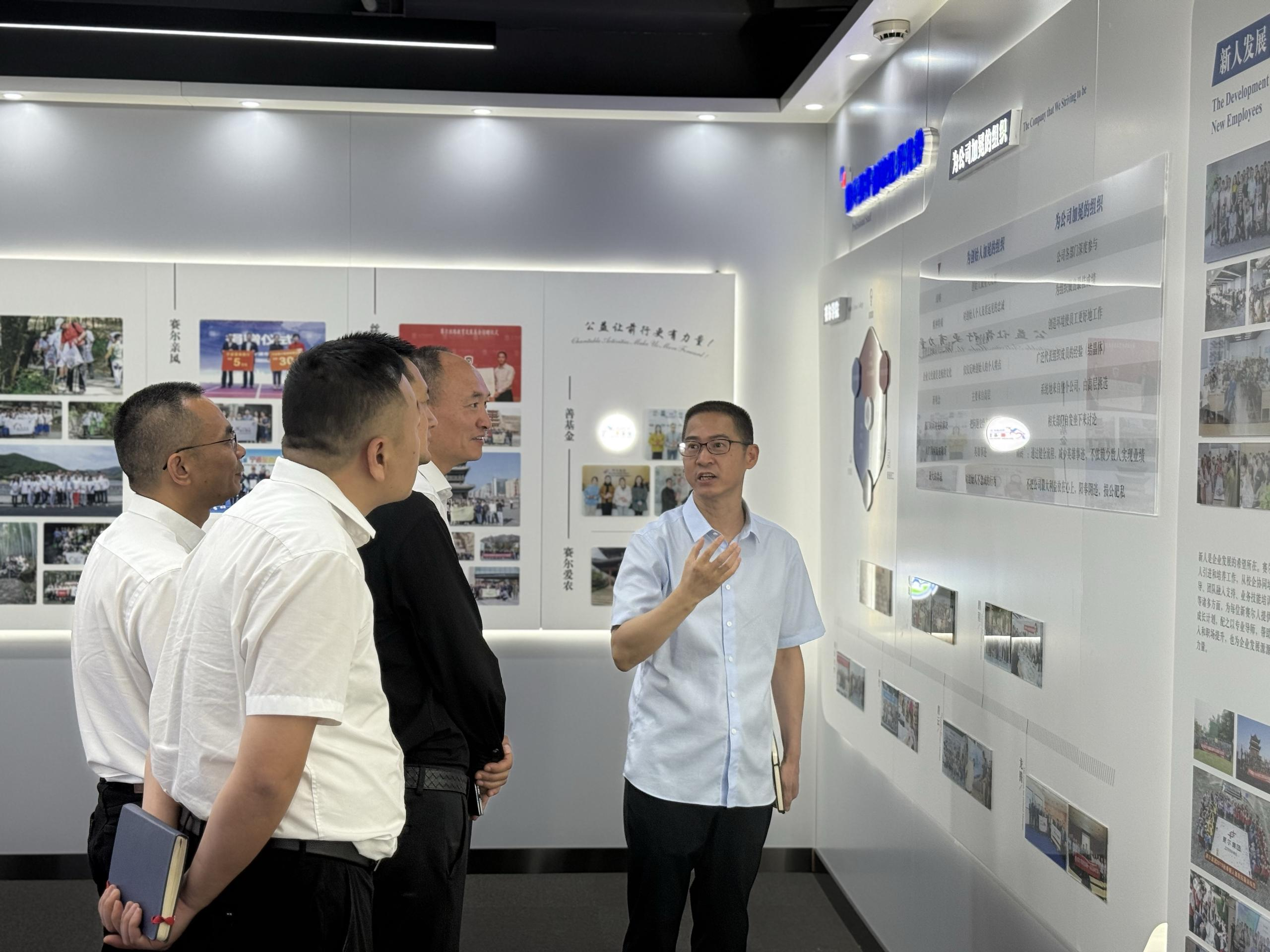 6月17日下午,中國聯通寧波市分公司總經理王武達率隊到訪賽爾集團,隨行人員包括副總經理陳葉能、高新區分公司副總經理胡慶波及業務經理鄔靜娜。賽爾集團董事長徐平炬熱情接待了來賓,奉化經濟促進會會長翁啟棟、集團數字技術負責人紀福建、智蜂物聯公司總經理徐嵐等一同參與了接待。徐平炬董事長陪同來賓參觀了集團文化展廳,并系統講解了集團的發展歷程、企業文化特色、創新合伙人模式及業務發展現狀,同時介紹了樂盒文旅項目的運營規劃和集團生態圈建設的最新情況。