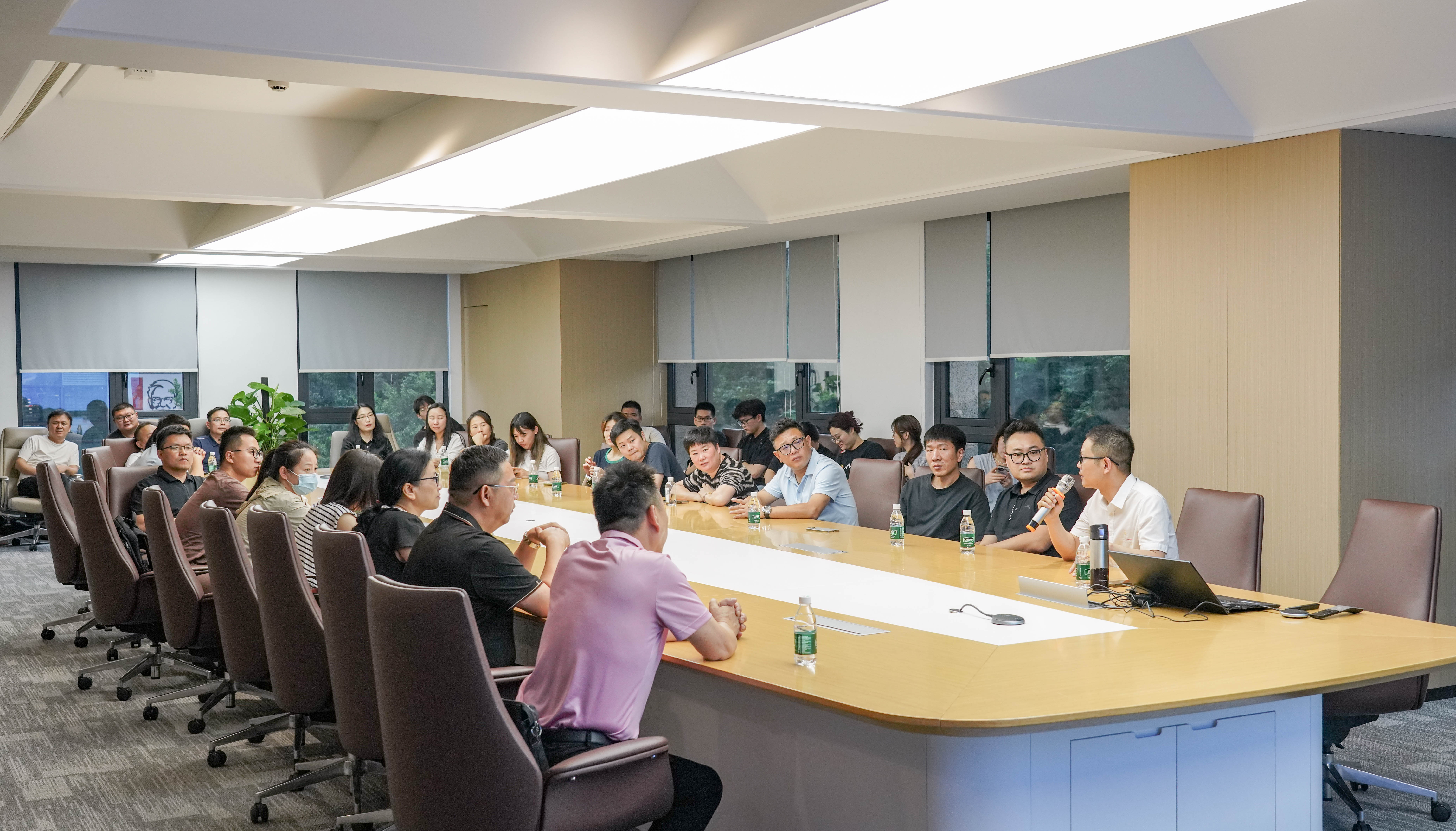 參訪團一行首先參觀了企業文化展廳和產品展示中心。孟祥龍總經理詳細介紹了集團的發展歷程、業務生態,直觀展示了各類產品的工藝細節與創新設計。參觀結束后,吳金財經理就集團在跨境電商供應鏈體系建設和數字化服務方面的優勢進行了簡要介紹。與往屆活動不同,本次交流會特別延長了自由對接環節,為企業提供了更充分的溝通機會,現場氣氛熱烈,成果顯著。來自集團優越東吳、綠時、倍優、優遠等多家公司的業務骨干們與企業代表們自發形成多個討論小組,圍繞近期熱點話題展開深入交流。
