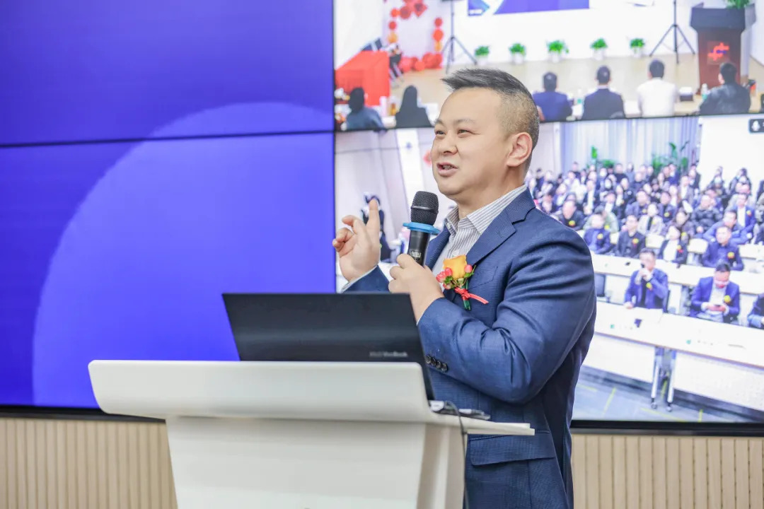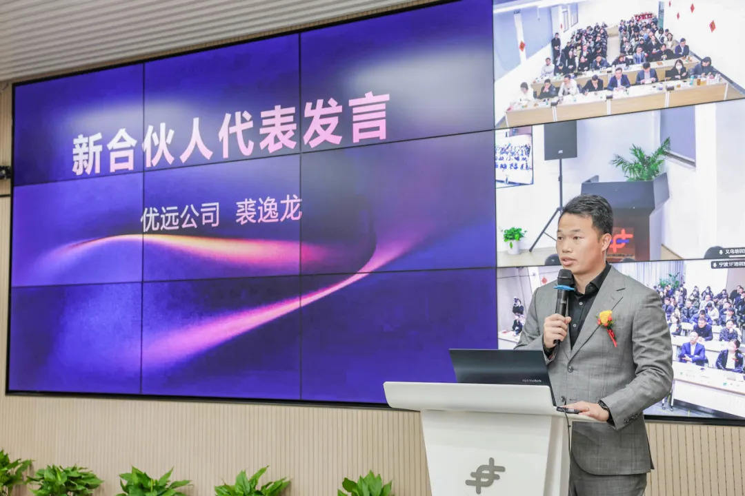 會議進行了新入合伙人簽約儀式。王淑樂、孫榕、謝智娟、方慧芳、金曉霞、李培斯、黃偉堒、劉鋒、裘逸龍、胡勇奇、劉慧兒、倪浩、金繼紅、張水清、鐘笑寒、雷雁、汪宏偉、劉艷、王正強等19位骨干同事成為新合伙人。徐平炬董事長和錢天鋒聯席總裁分別與新合伙人簽約。優遠公司裘逸龍和優達公司張水清代表新合伙人分別發言。裘逸龍回顧了職業發展歷程,他表示部門業績持續增長,得益于集團平臺資源支持、公司機制助力以及業務團隊凝心聚力。優達公司張水清結合本人工作感悟和跟單部門工作實際,聚焦大客戶跟單流程與關鍵節點,跟單人員績效考核方式等方面進行了重點展示說明。