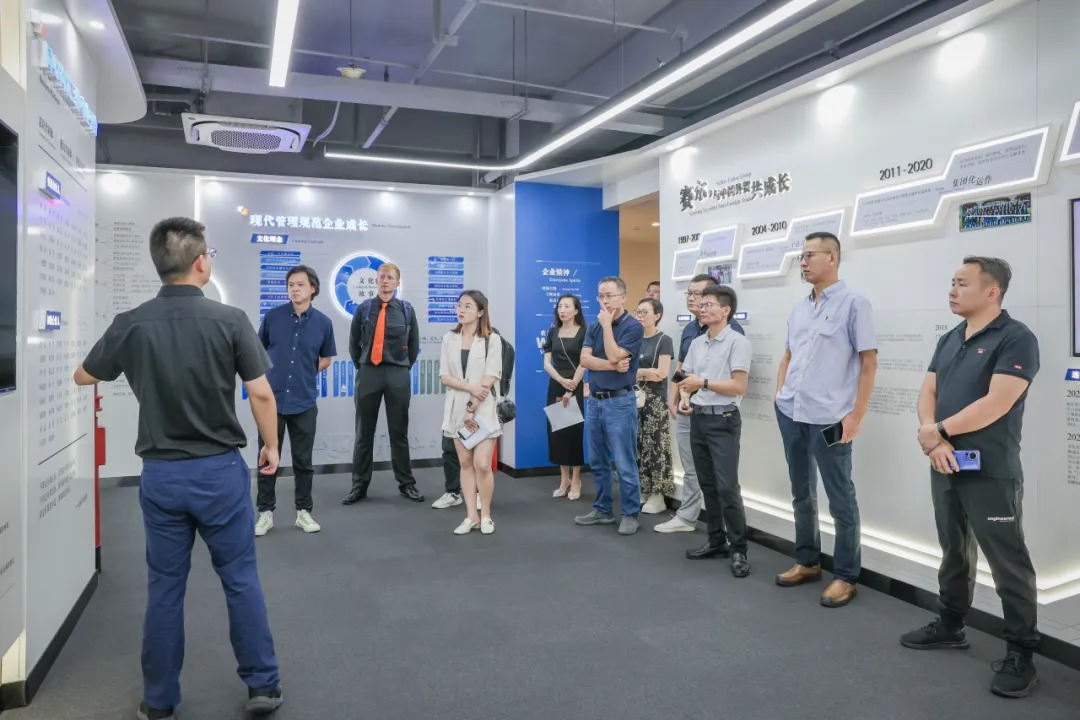 簽約儀式之前,賽爾集團市場研究部總經(jīng)理孟祥龍帶領(lǐng)滾動狗工具參會代表一行,參觀了賽爾集團企業(yè)文化及產(chǎn)品展廳,并簡要介紹了賽爾集團發(fā)展歷程、組織架構(gòu)、文化理念、業(yè)務板塊等。